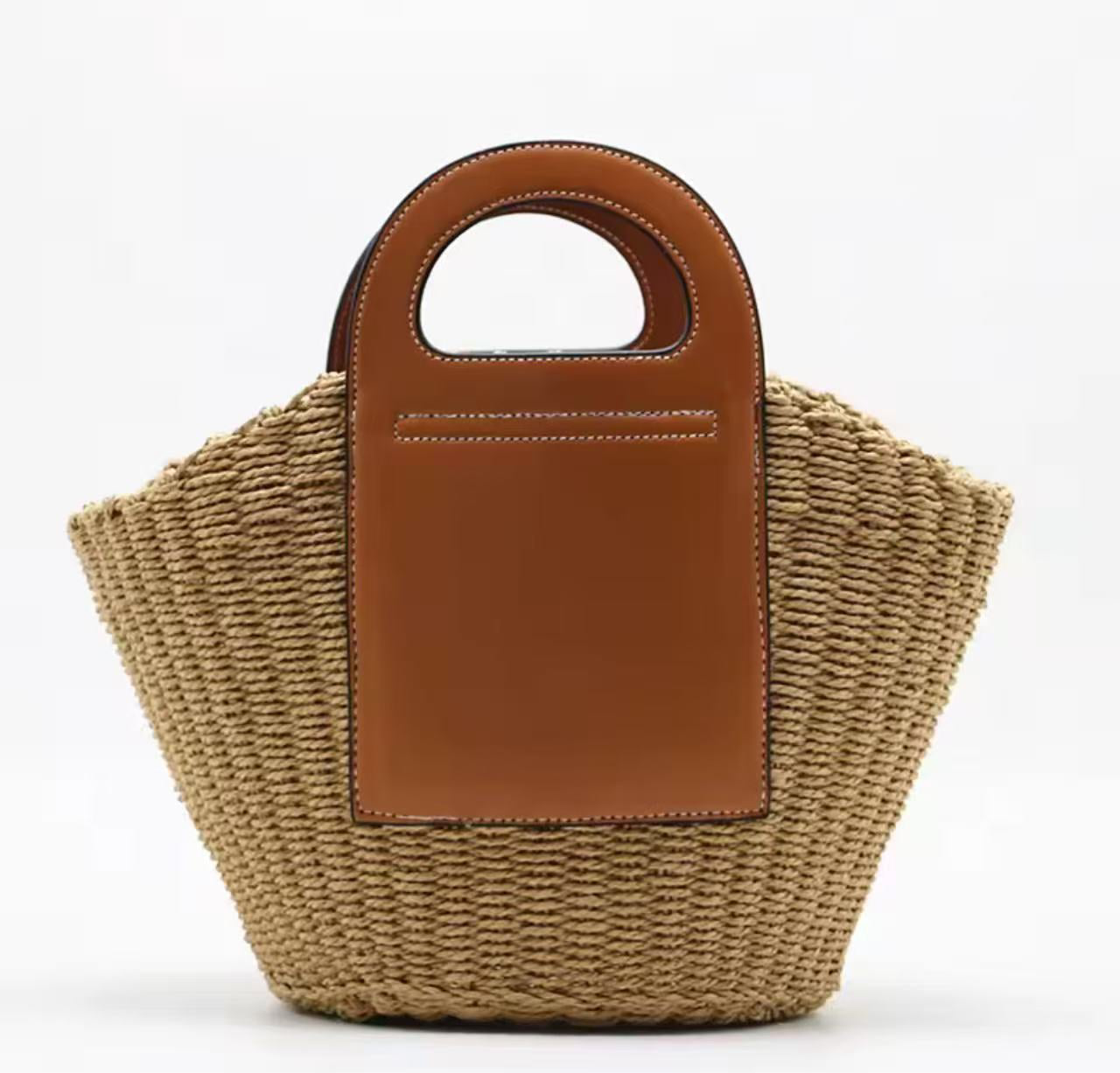 Step out in style with our top handle beach bag — the perfect blend of function and fashion. Crafted from durable woven straw, it features sturdy top handles and a roomy interior to carry all your sunny-day essentials. Whether for beach days, brunch dates, or vacation getaways, this chic tote completes every coastal look.