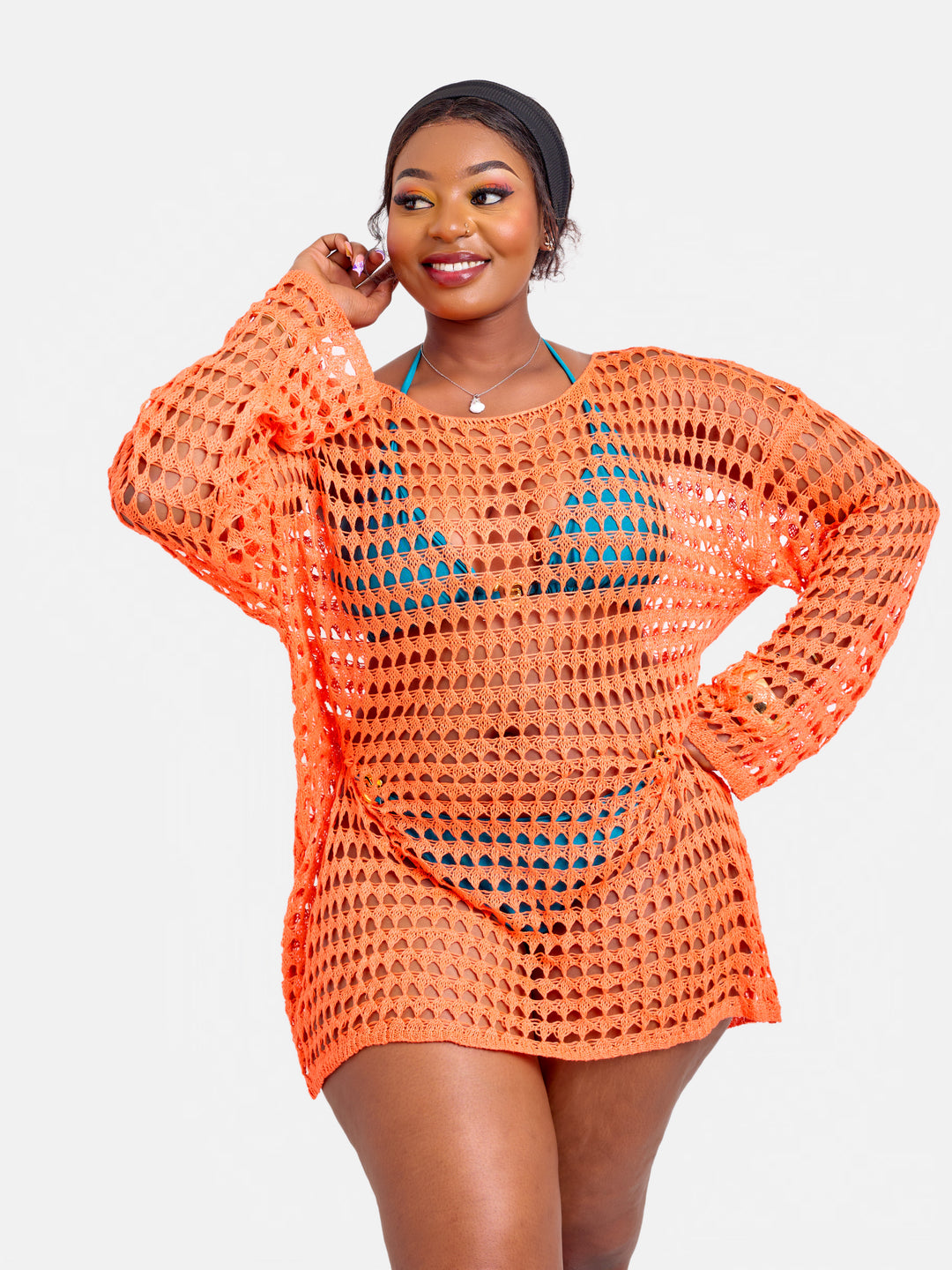 Mini long sleeve oversized crotchet beach cover up