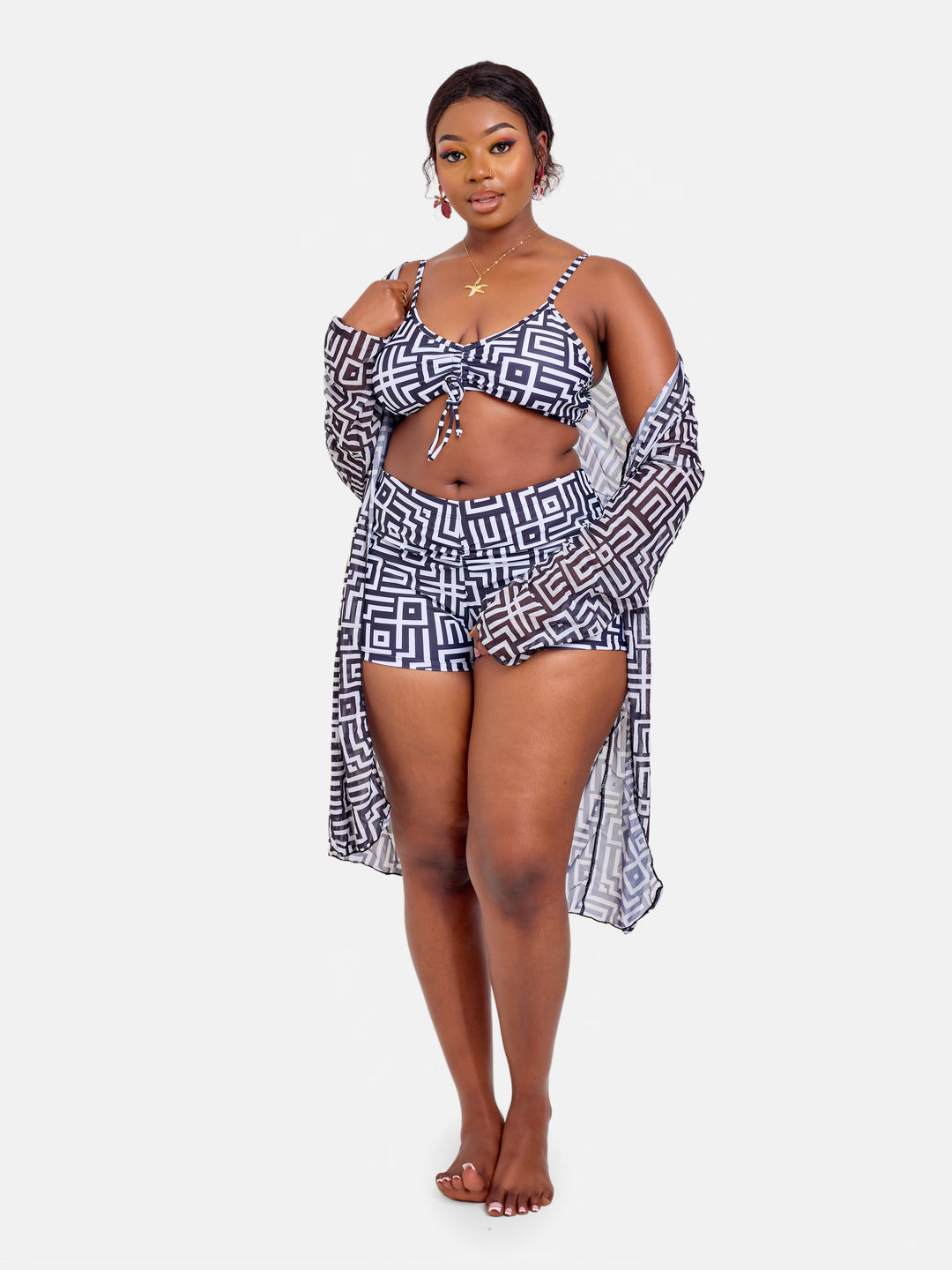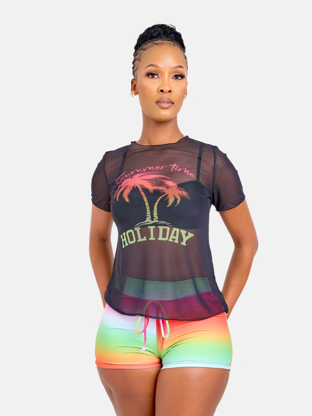Sheer top with bikini shorts