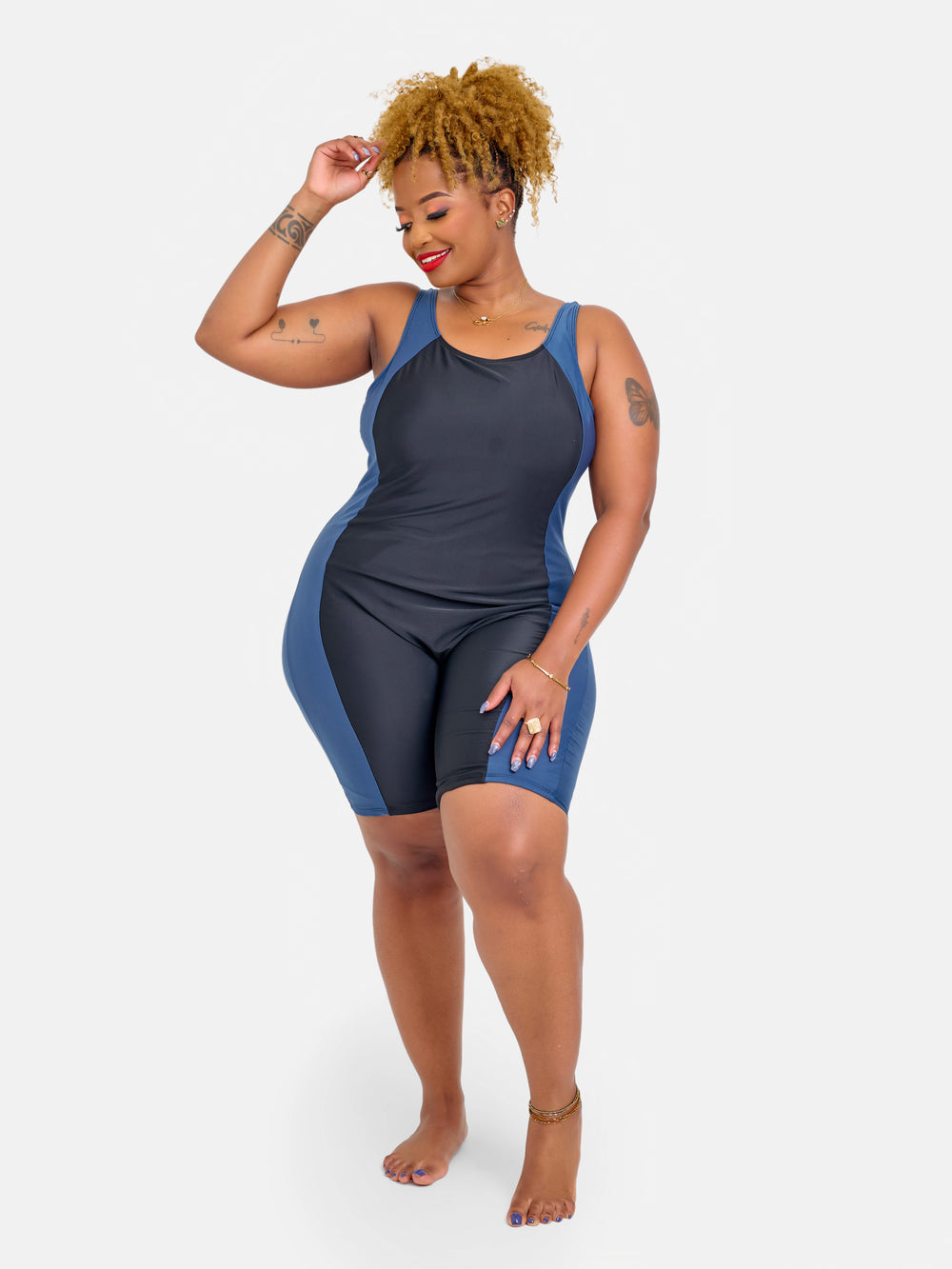 Modest sculpting one piece with long shorts