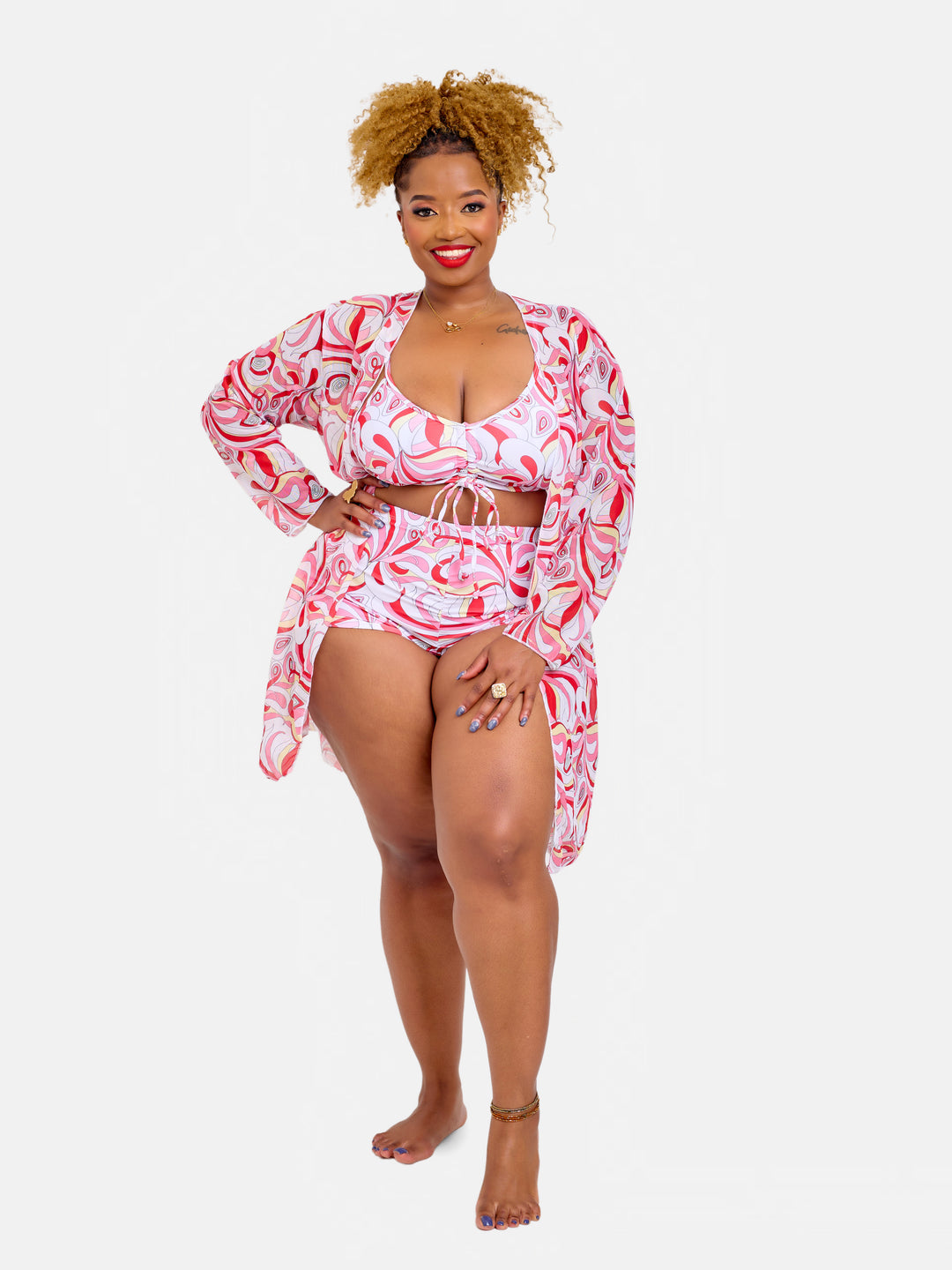 High waisted bikini shorts with cover up