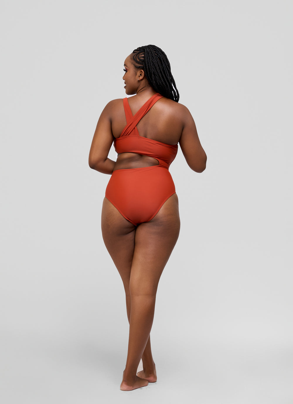 Cut out waist one piece rust brown