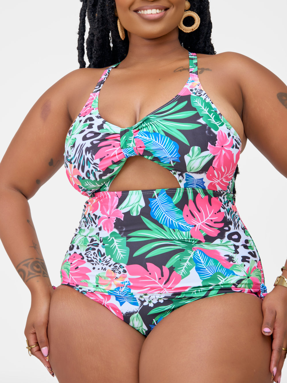 Animal print cut out monokini