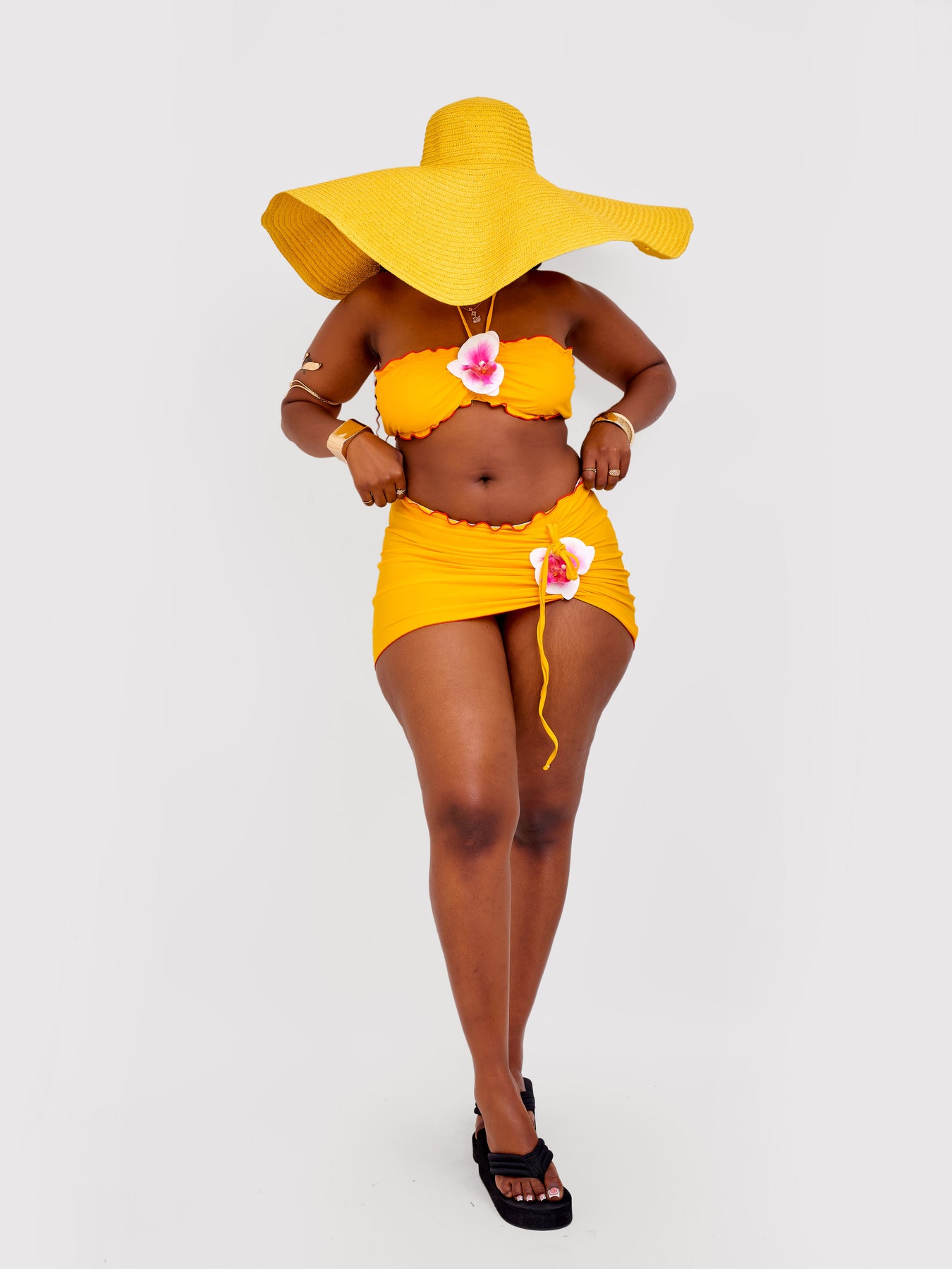 Orchid 3pc bikini set with vibrant floral detailing, flattering fit, and versatile coverup pieces—perfect for beach days, resort wear, and tropical summer vacations.